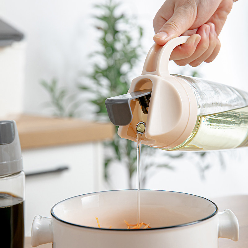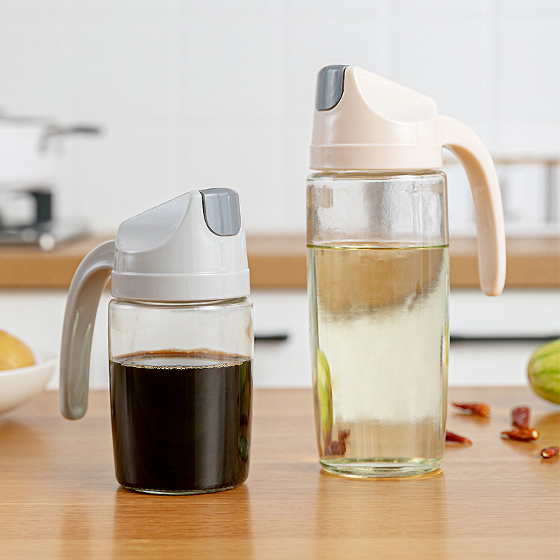 Automatic opening and closing oil pot with sesame oil soy sauce vinegar oil bottle glass leak-proof home kitchen oil tank transparent kitchen supplies