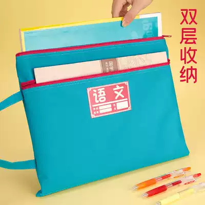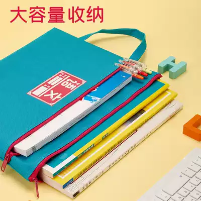 A4 primary school student document bag Canvas zipper large capacity handbag Subject bag Learning materials Tutoring test paper storage bag Subject subject student a4 document bag File bag Multi-layer a3