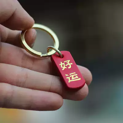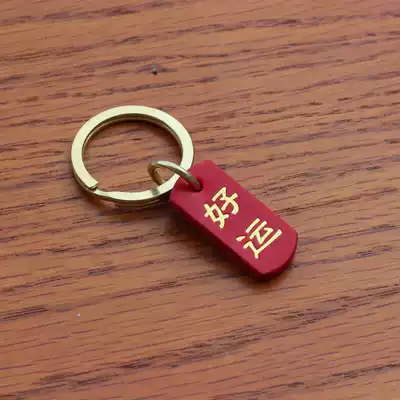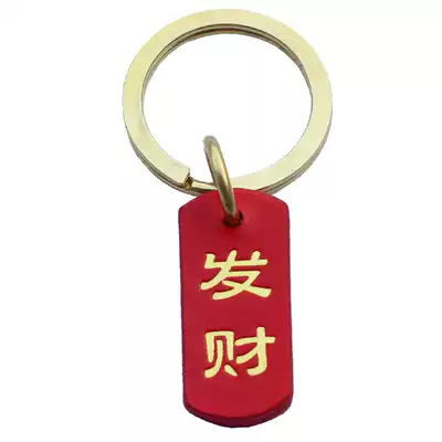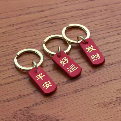 Handmade custom leather rich hot stamping safe men and women car keychain good luck blessing gift exclusive lettering hanging