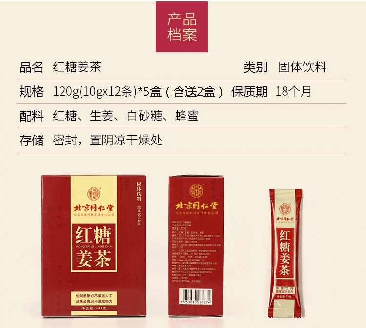 Beijing Tongrentang Red Sugar Ginger Tea Red Sugar Physiological Period Ginger Honey Ginger Mother Tea Old Ginger Soup Pouch Black Sugar 3 Boxes
