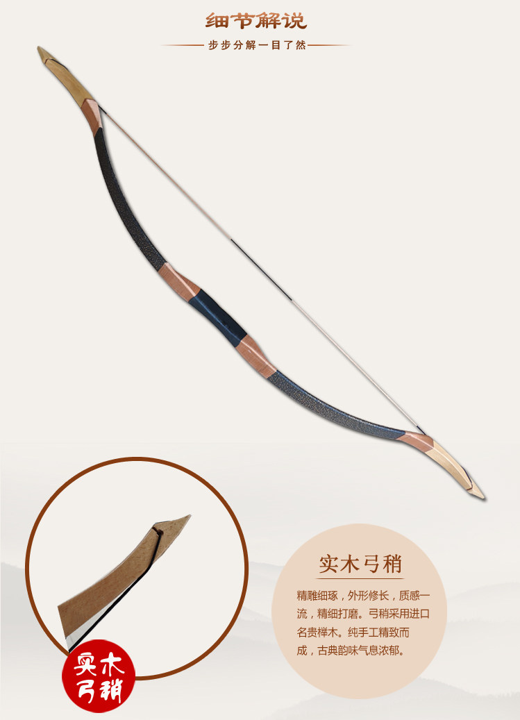 Traditional bows and arrows Ancient high-strength ancient wooden hand-made antique Mongolian traditional bow scenic spot Park adult entertainment