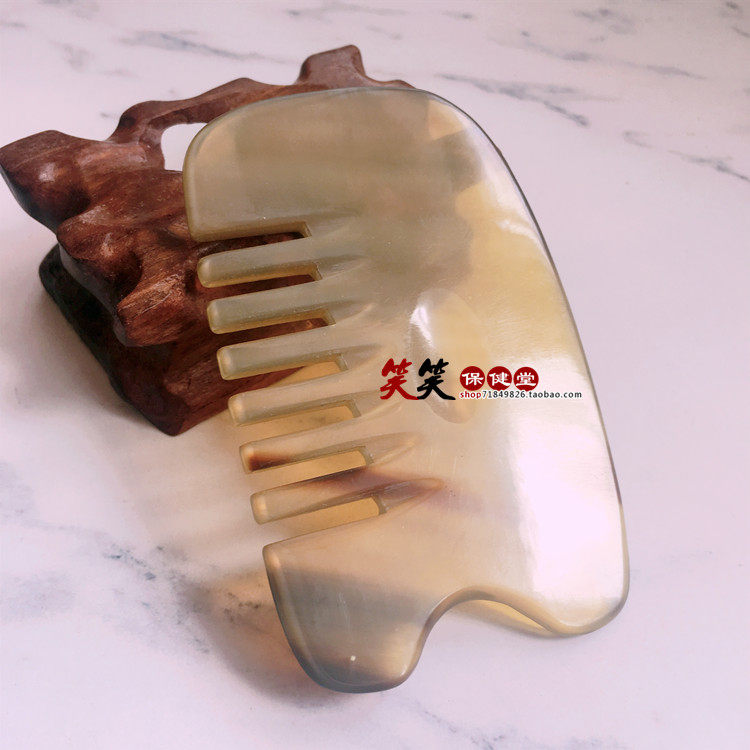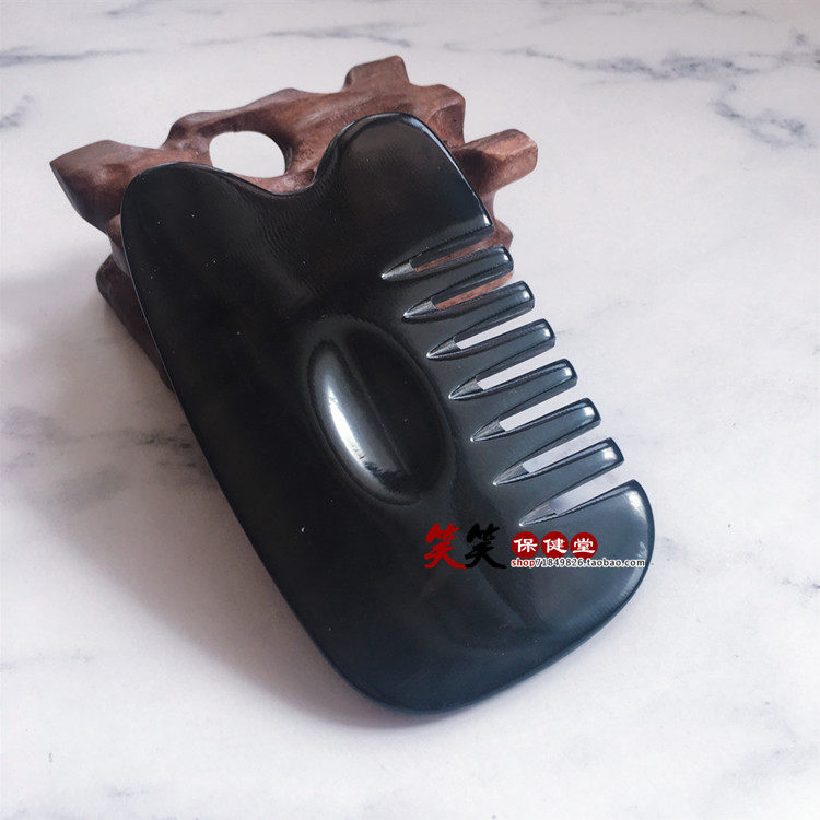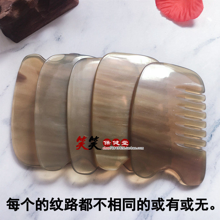 Buffalo horn scraping and massage comb thickened through lymph bronc comb black and yellow multi-functional six-tooth comb scraping