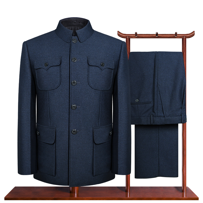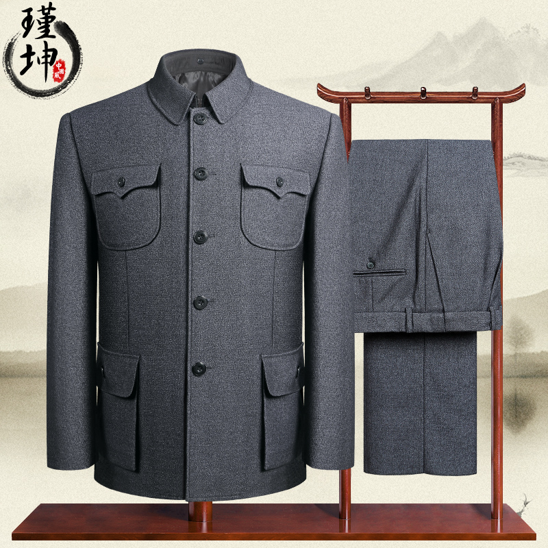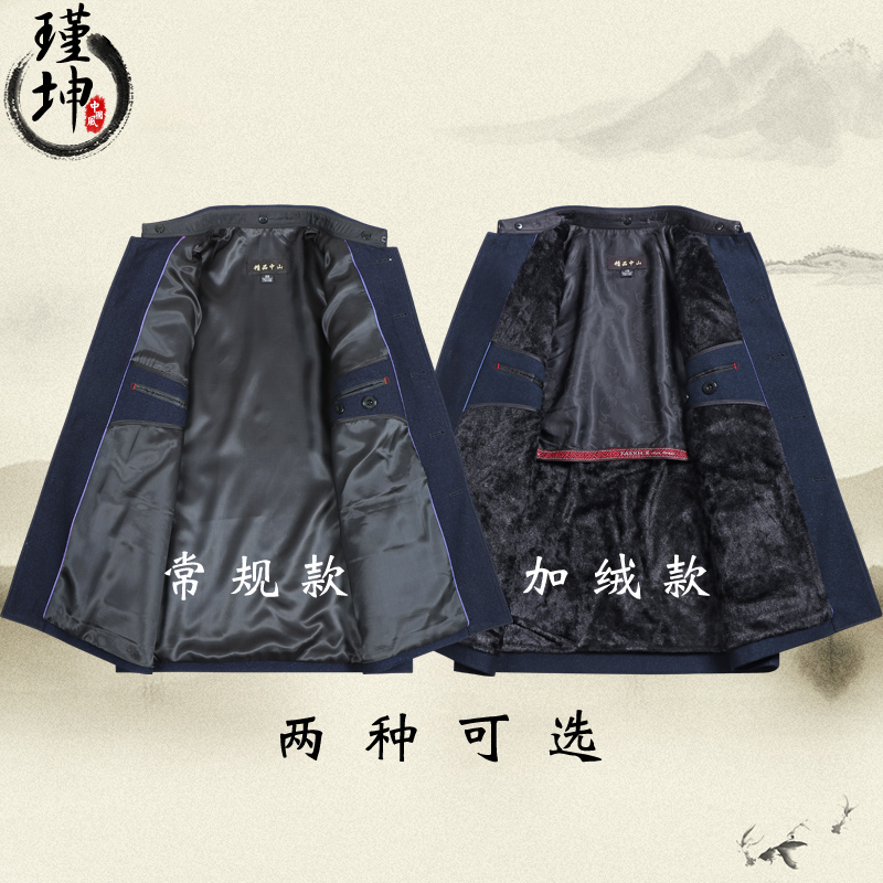 Autumn and winter middle age Zhongshan clothes men's cashmere Zhongshan clothes suit Dad Chinese style gown lenient Chinese style men's national clothes