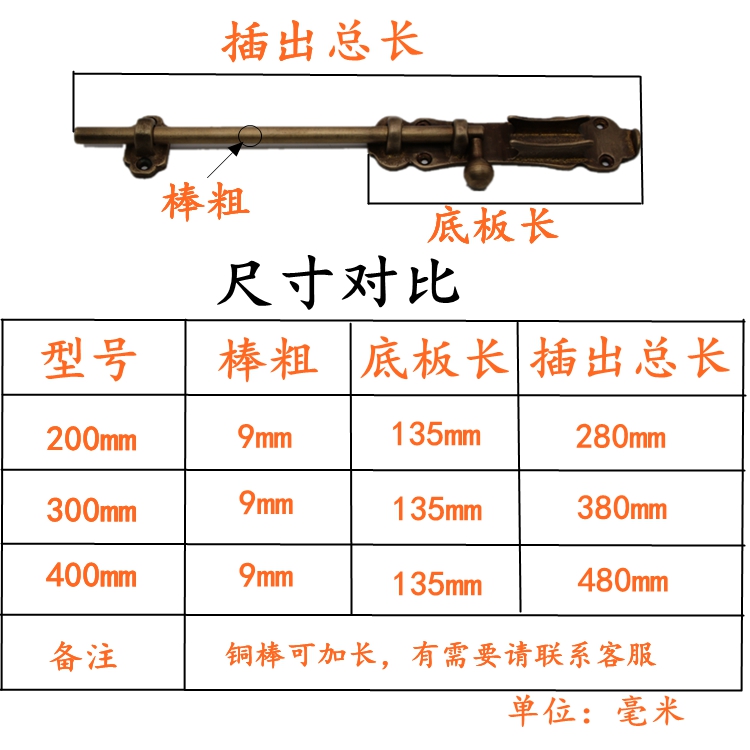 Chinese imitation antique pure copper bolt gate heaven and earth inserted garden door bolt door inserted lengthened solid insert bar customizable-Taobao
