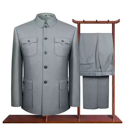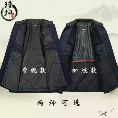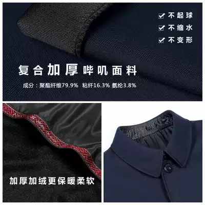 Plus velvet Chinese tunic men's middle-aged and elderly double-sided Serge Zhongshan suit suit Grandpa jacket Chinese style national service thickened