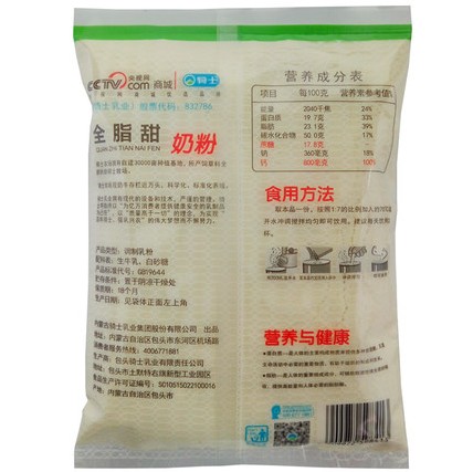 Inner Mongolia Rider Whole Fat Sweet Milk Powder 400g * 2 Bag Composition Teenage Adults Middle Aged Calcium Supplements Instant Milk Powder
