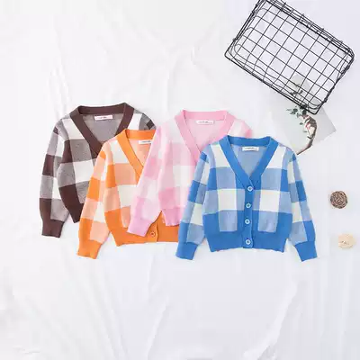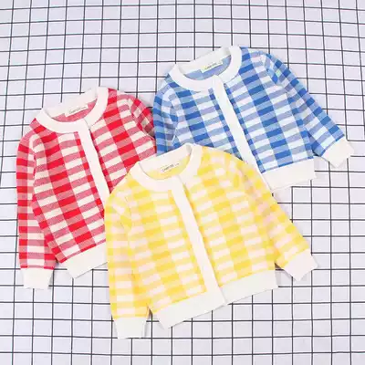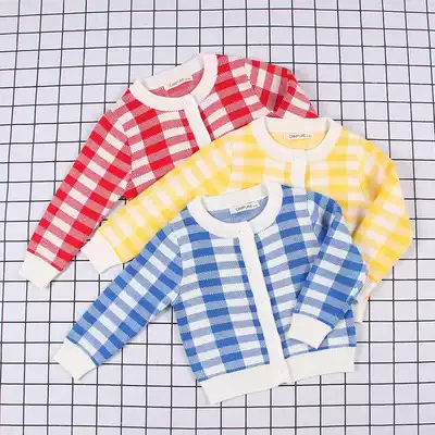 Spring and Autumn Cotton Candy Color British Plaid Knitted Cardigan Single-breasted Male and Female Children's Infant Wool Coat