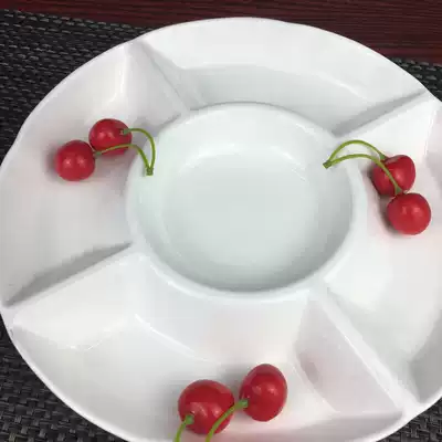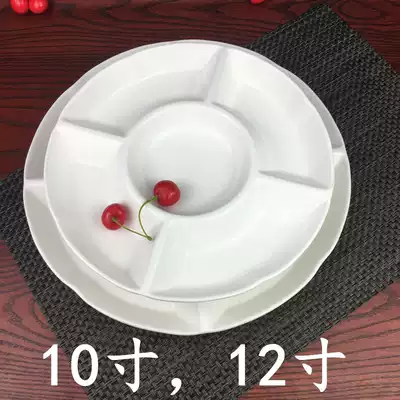 Hotel ceramic grid fruit snack plate Fish raw plate five grid platter Household pure white braised water snack tableware