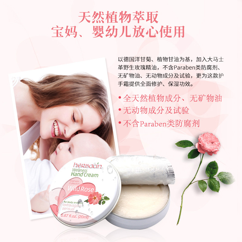German Herbacin small chamomile wild rose hand cream 20ml natural rose essence nourishing and moisturizing