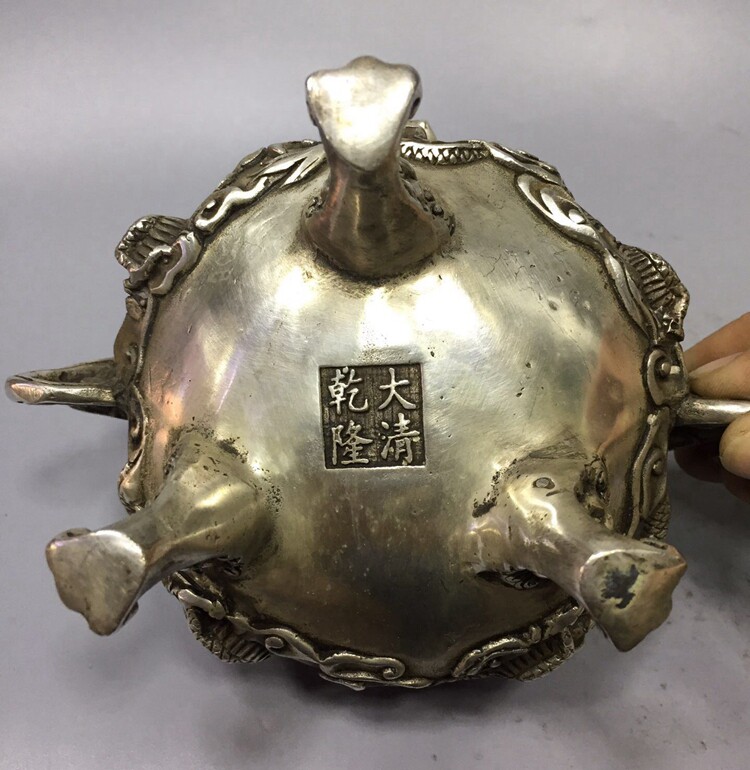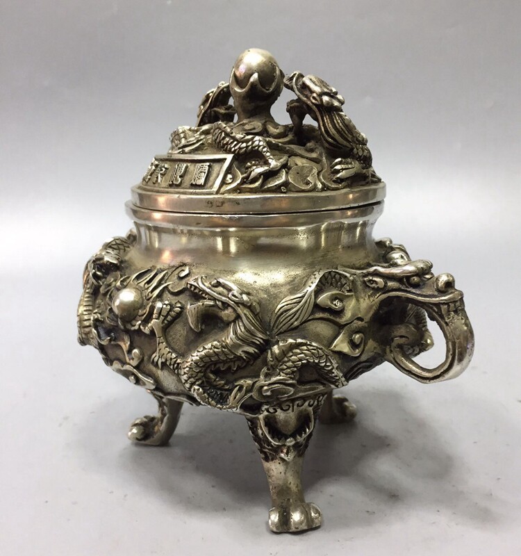 White Bronze Incense Furnace Pure Copper Kowloon Furnace Twin Dragon Drama Pearl Furnace Pure Copper Lavender Furnace Ancient Play Collection