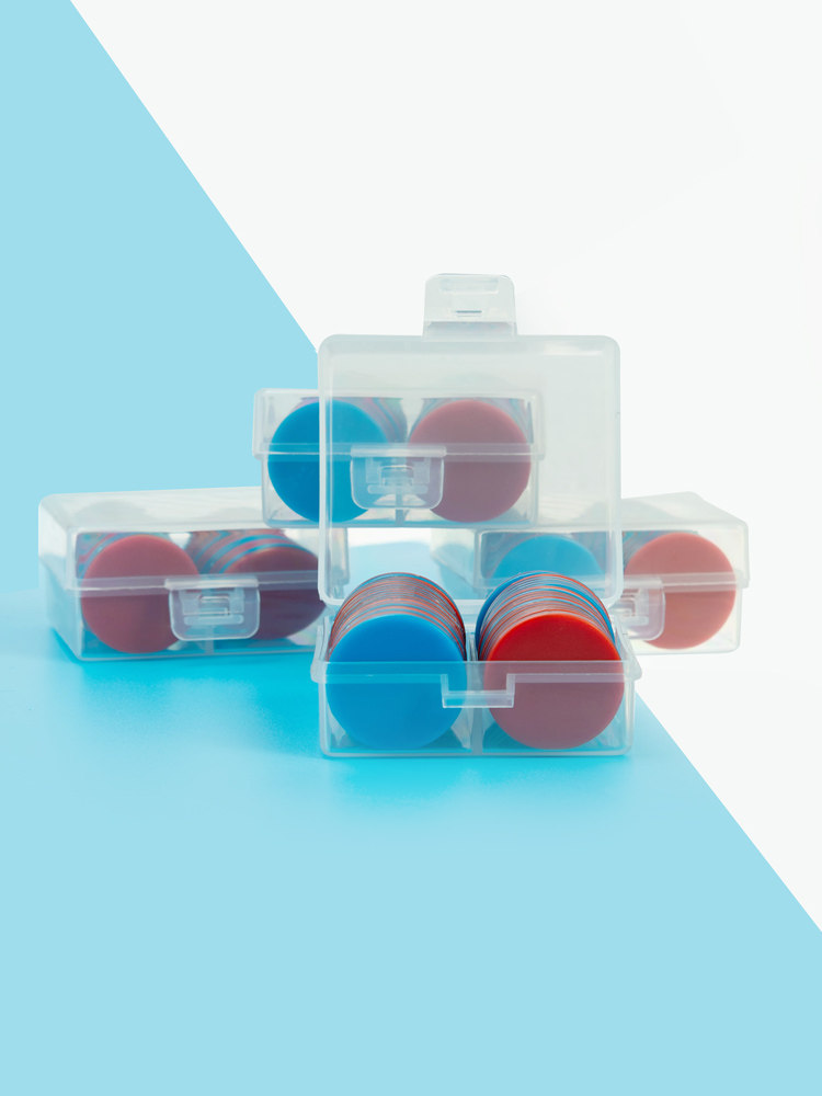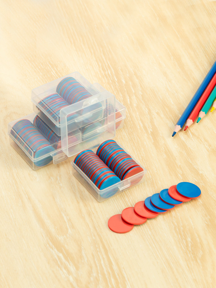 Red and blue bi - color coin teaching tool for first grade primary school students in mathematics academic academic coin counter plastic coin tablets two - color small round 25mm chip token teaching tool