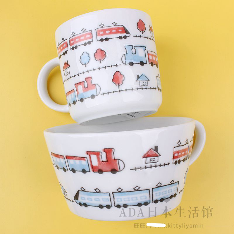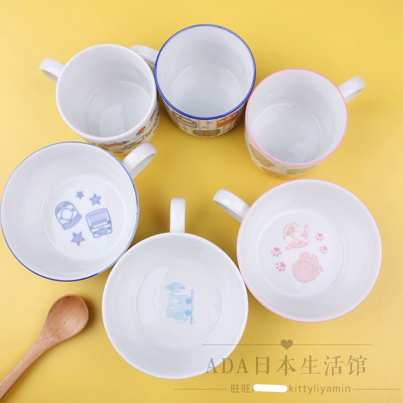 Japan Imported Children's Ceramic Mark Cup Cartoon Soup Bowl Japan Style Breakfast Cereal Cup glass with handle cup