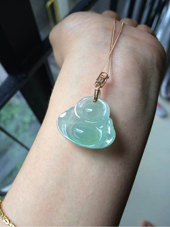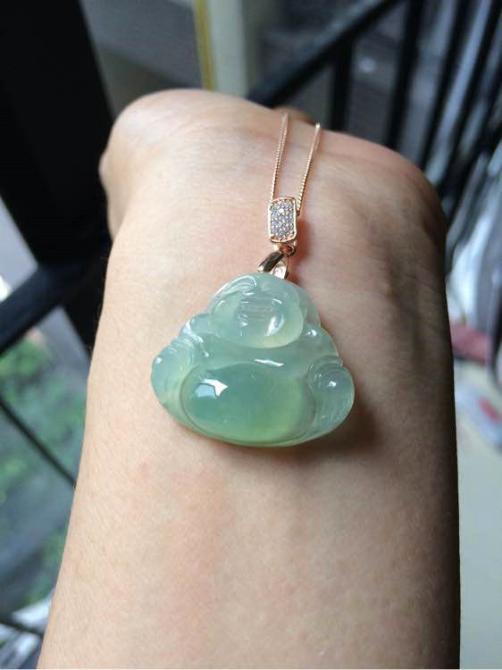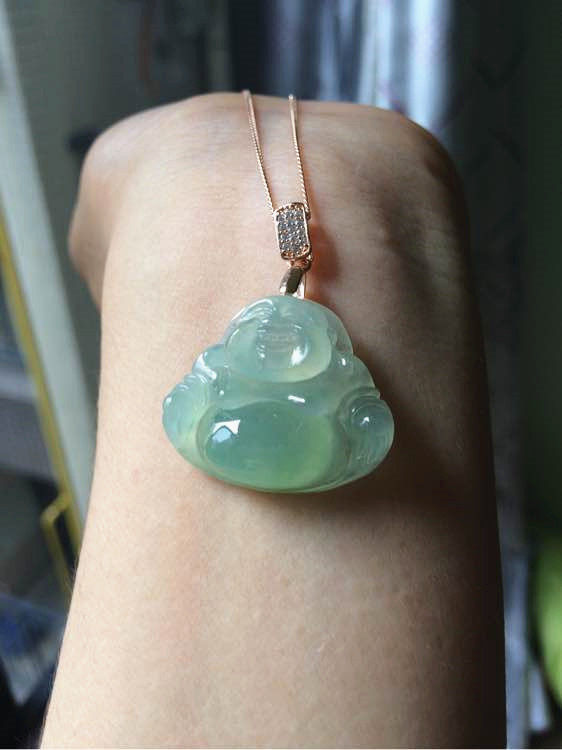 Myanmar a cargo jade Buddha male pendant female jade Buddha laughing Buddha Yang green Guanyin ice species clear water station Buddha set 18k gold