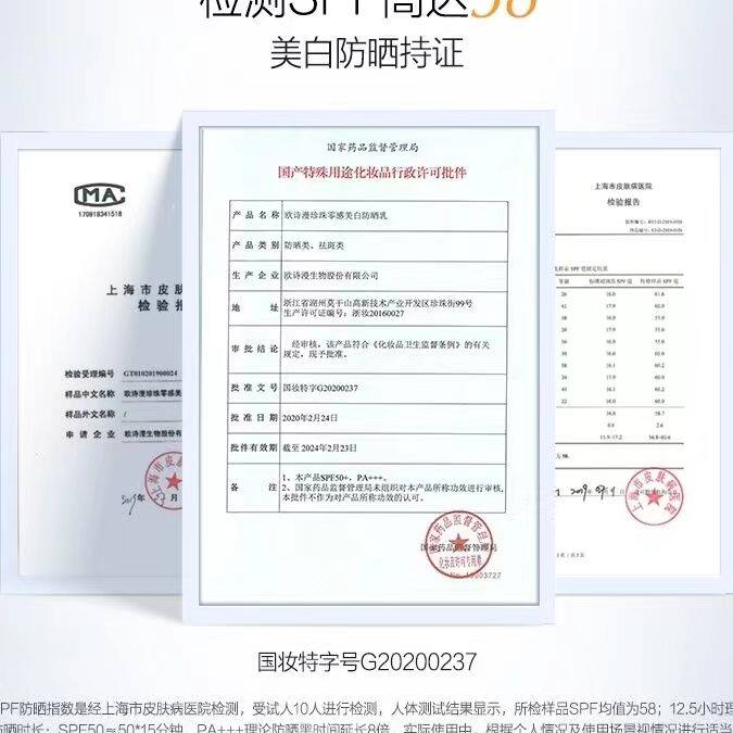 Ou Shiman sunscreen milk pearl zero sense whitening sunscreen isolation female face anti-frivolous cosmetics anti-counterfeiting