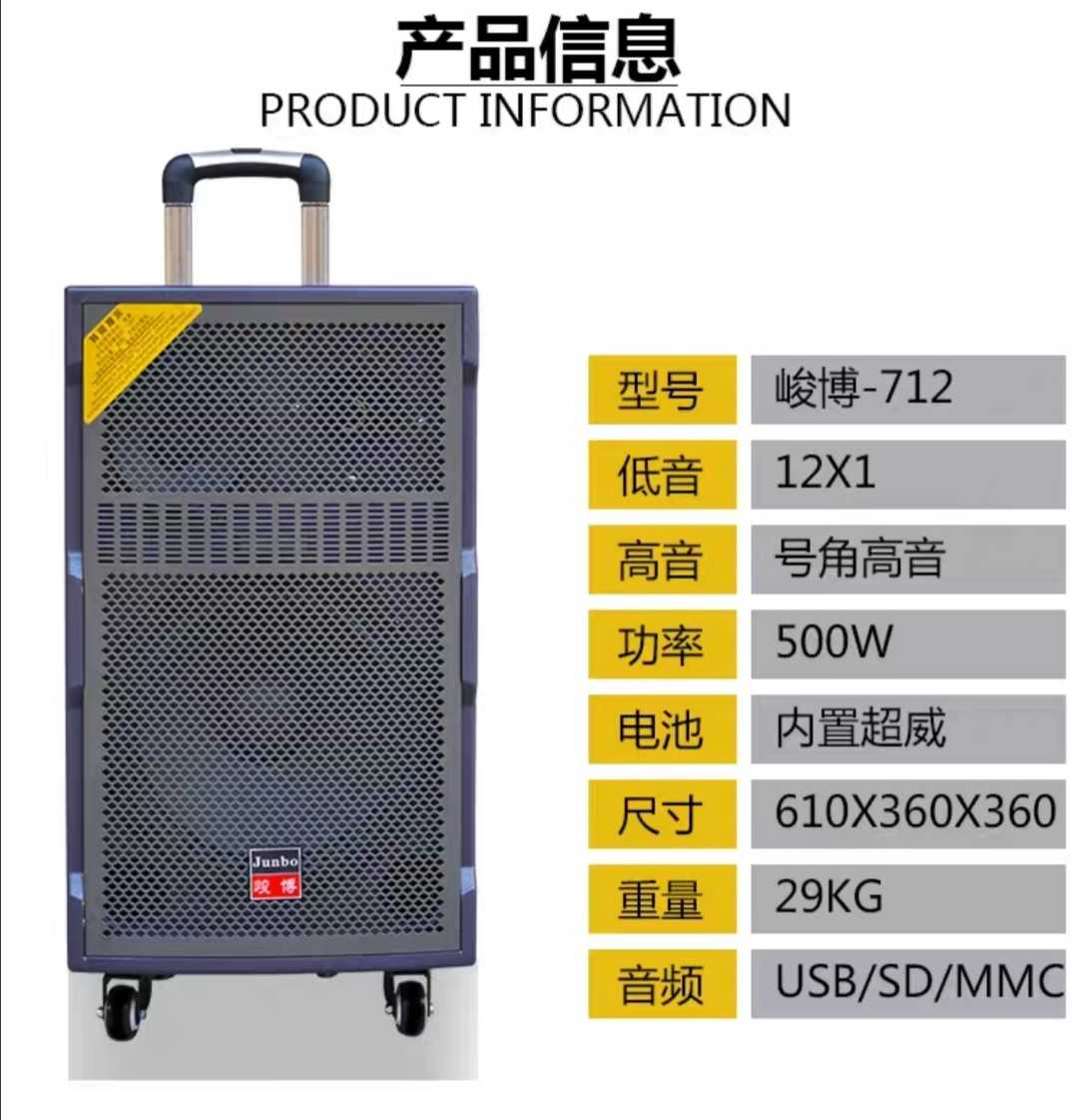 Junbo 712 high-power 12-inch 3-way playing and singing outdoor fast hand Bluetooth wireless microphone battery speaker