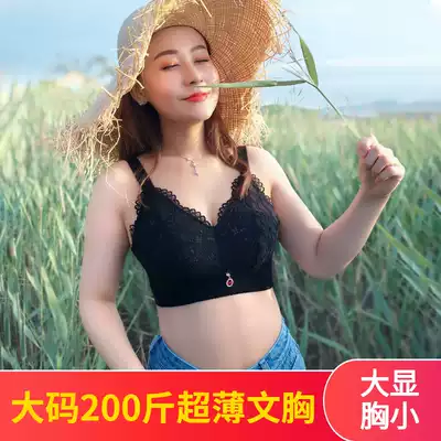 Large size fat mm200 kg anti-sagging large chest display small bra Underwear thin transparent sexy full cup without steel rim