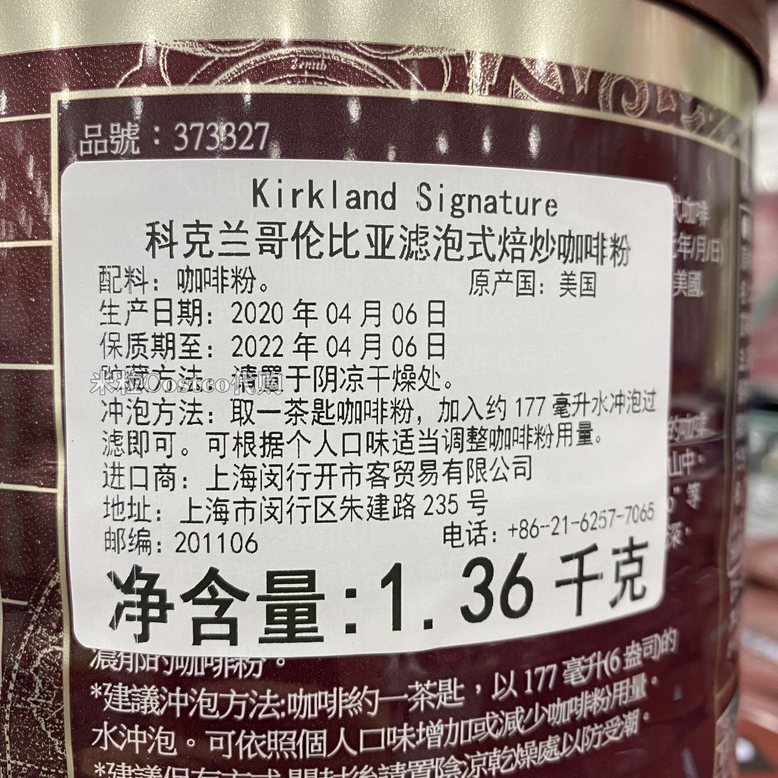 Shanghai CostcoKIRKLAND Kirkland Colombian filter coffee powder 1 36kg deep roasting