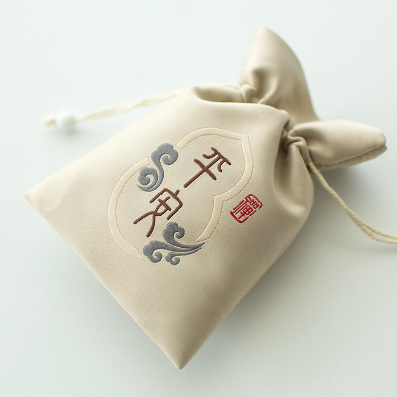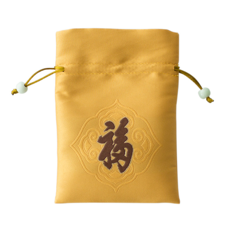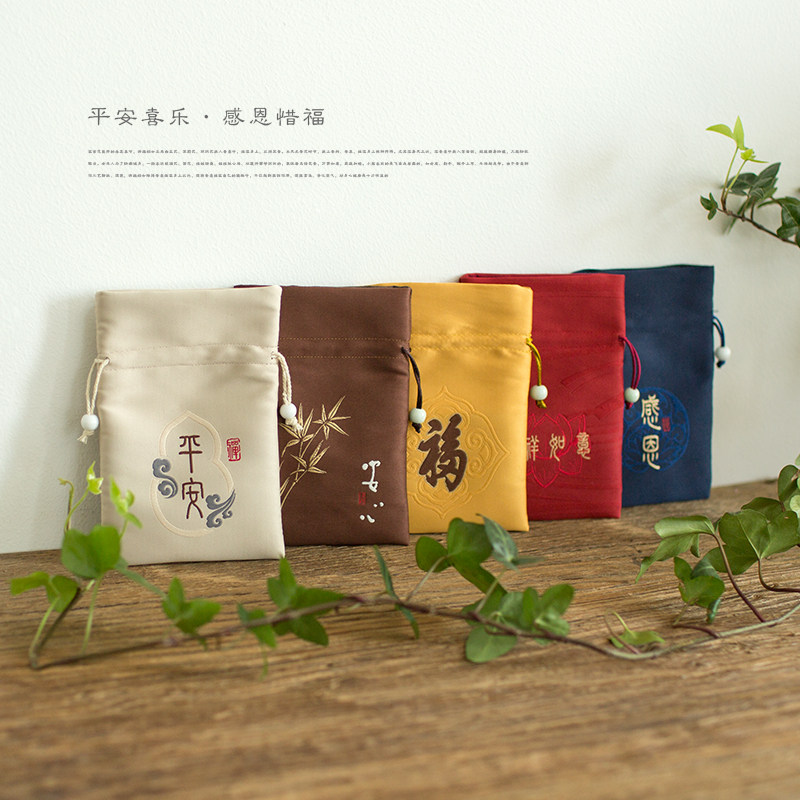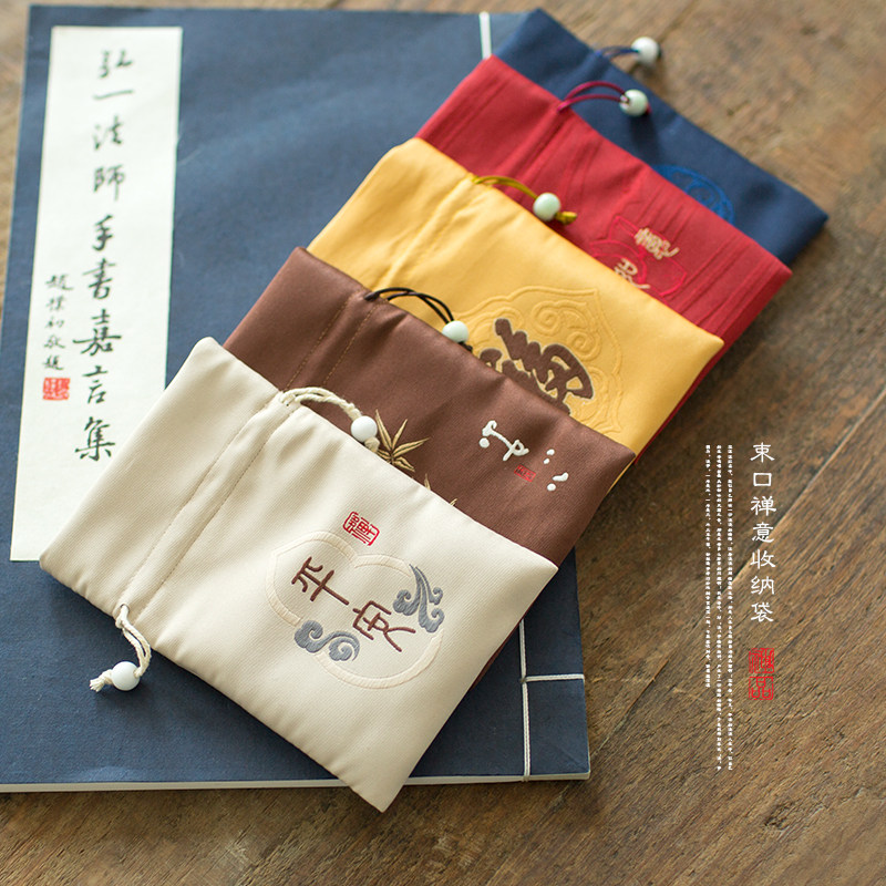 Blessing bundle mouth silk embroidery cloth bag closure retro square bag text play jewelry storage bag hand string Buddha beads bag sachet empty bag