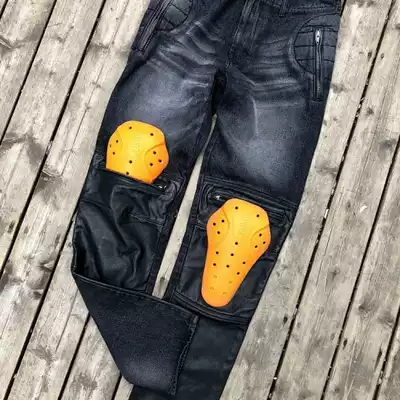 Spot men's Harley riding pants protective gear retro Cowhide jeans Indian windproof warm motorcycle leather pants black