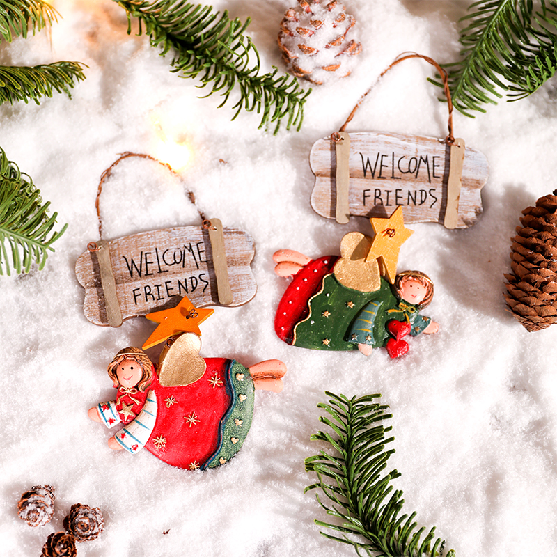 Christmas decorations small pendants retro nostalgia resin European-style Decorative Little Girl Angel Christmas Tree Scene Arrangement