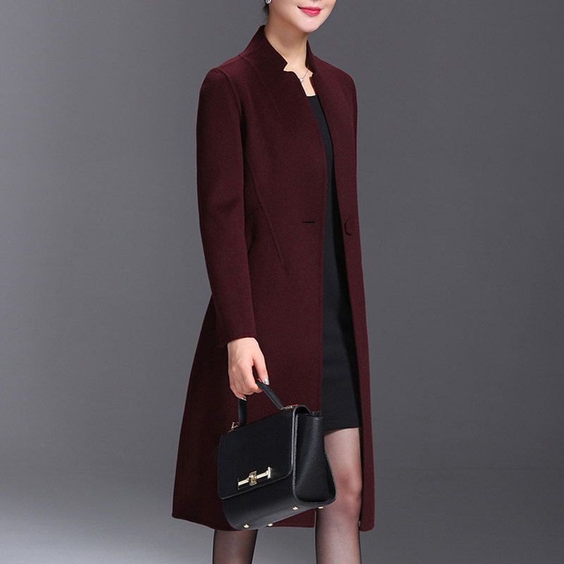 2021 double-sided cashmere coat women's long Korean version over the knee slim slim 100% wool stand-up collar wool coat
