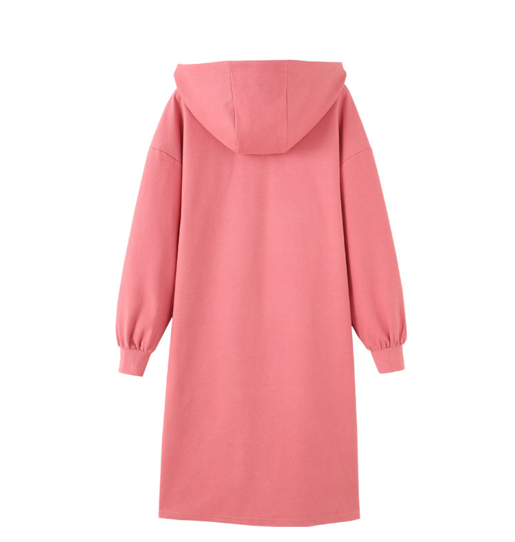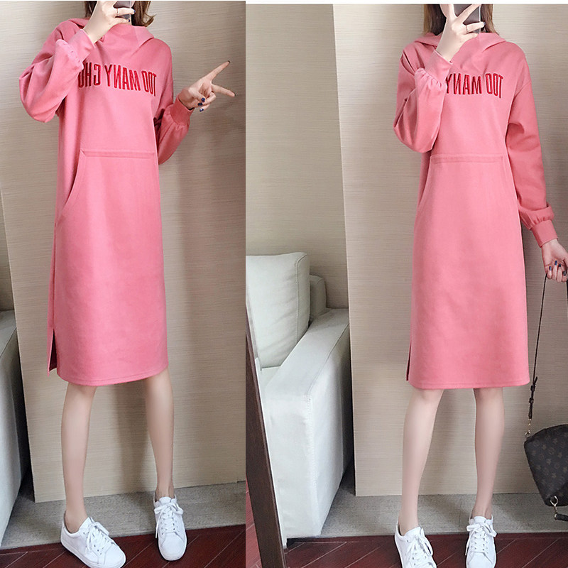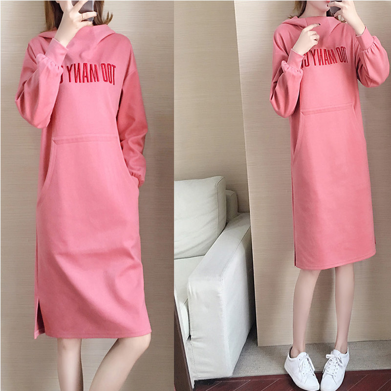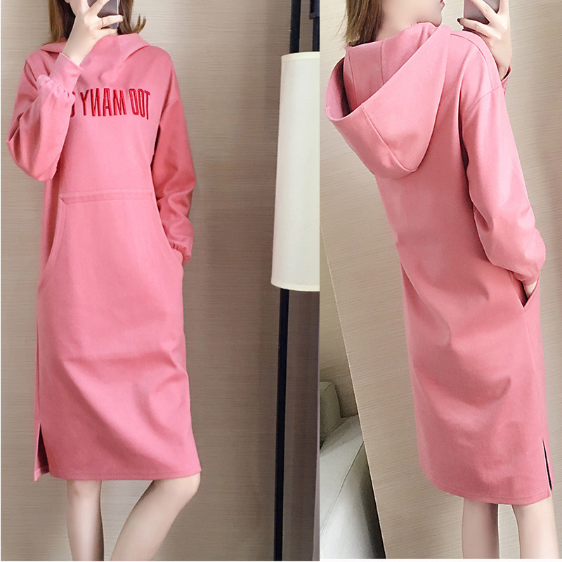 Spring and autumn weathers women's thin section 2022 new long sleeves Korean version loose open fork fall long version over kneecap dress pink