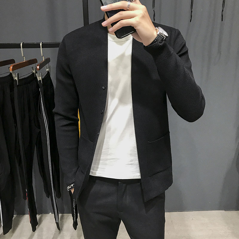 2022 spring new men's long sleeves knit cardio-hoodie fake two sweater men casual spring and autumn sweater jacket