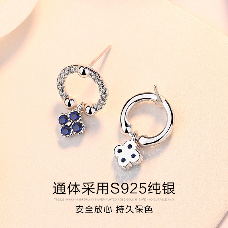 S925 silver four-leaf straw-ear nail fine gift box collection to join the car purchase-enjoy life for a new time (this not to be taken) S925 silver four-leaf straw earnail revered gift box