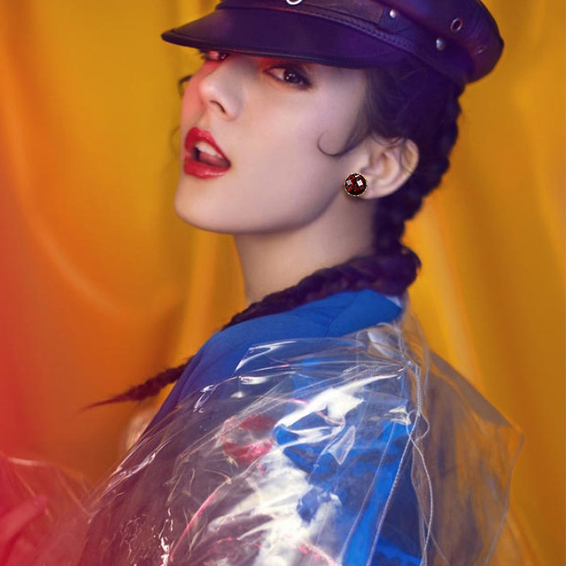 A STAR original high-grade ruby ear needle female 925 silver personality temperament net red Korea 2019 new trend