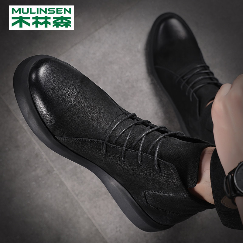 The Wooden Martin Boots Male 2022 new British wind high - gang soft - solid soft - solid skin leather boots male