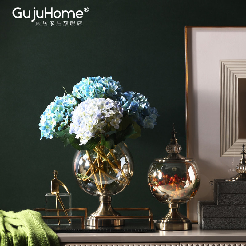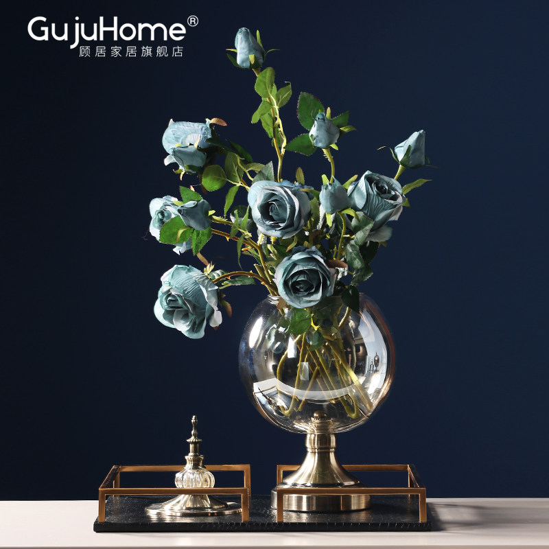 Creative European vase decoration Glass transparent American dining table Coffee table Light luxury soft decoration Home living room flower arrangement