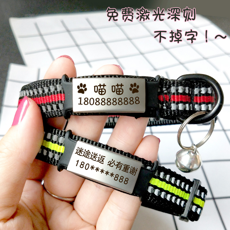 Dog Tag Customised Reflective Collar Cat Dog Neck Dog Collar Teddy Bibear Nighttime Anti-Car Crash Lettering of a large canine