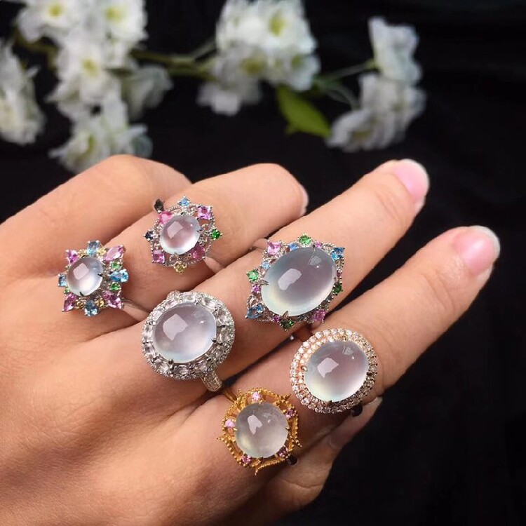 Burmese jadeite ring, a pair of yang green ear needles, ice seed yang green egg face, high ice jadeite ring face, 18k inlay