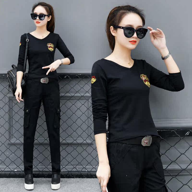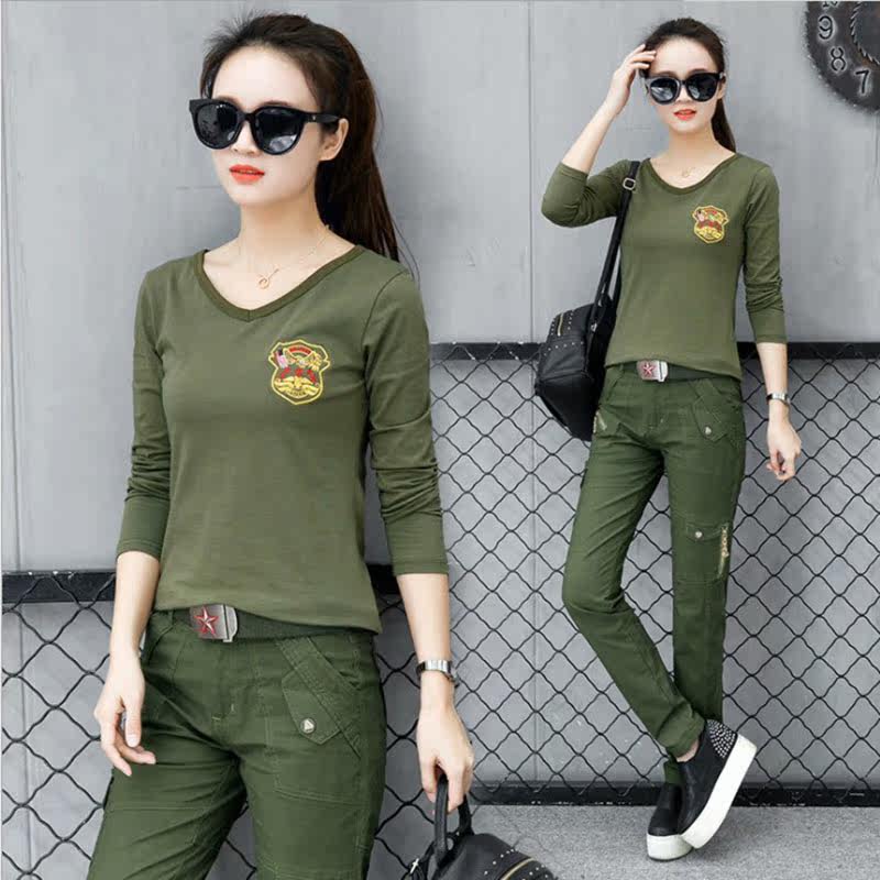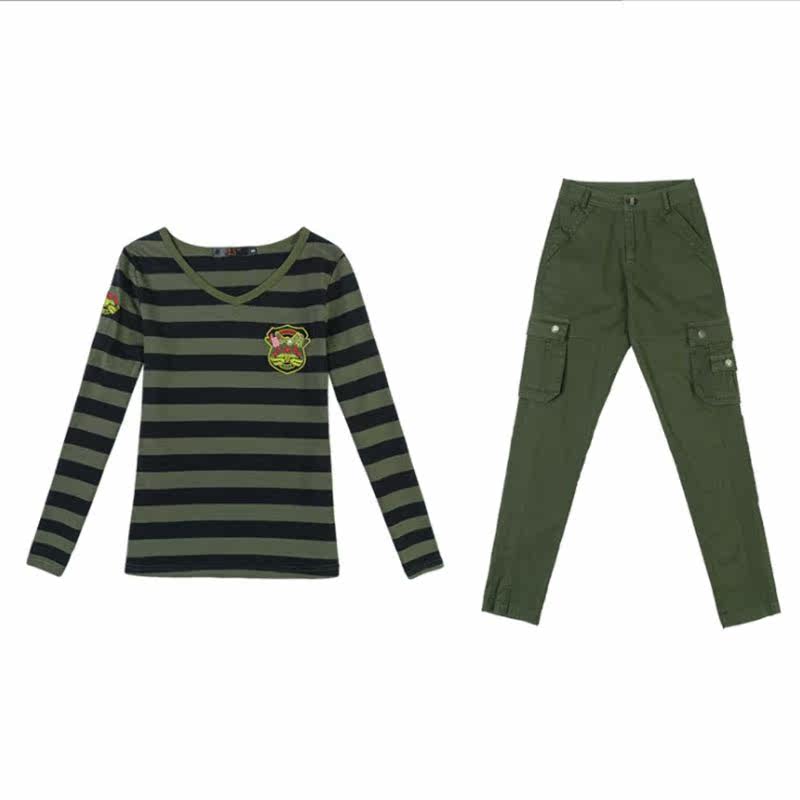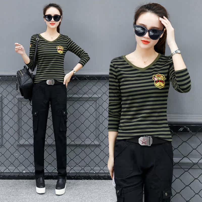 Camouflage long sleeve T-shirt V-collar striped tops sailor dance outdoor outdoor student Han Edition trend