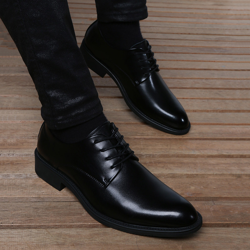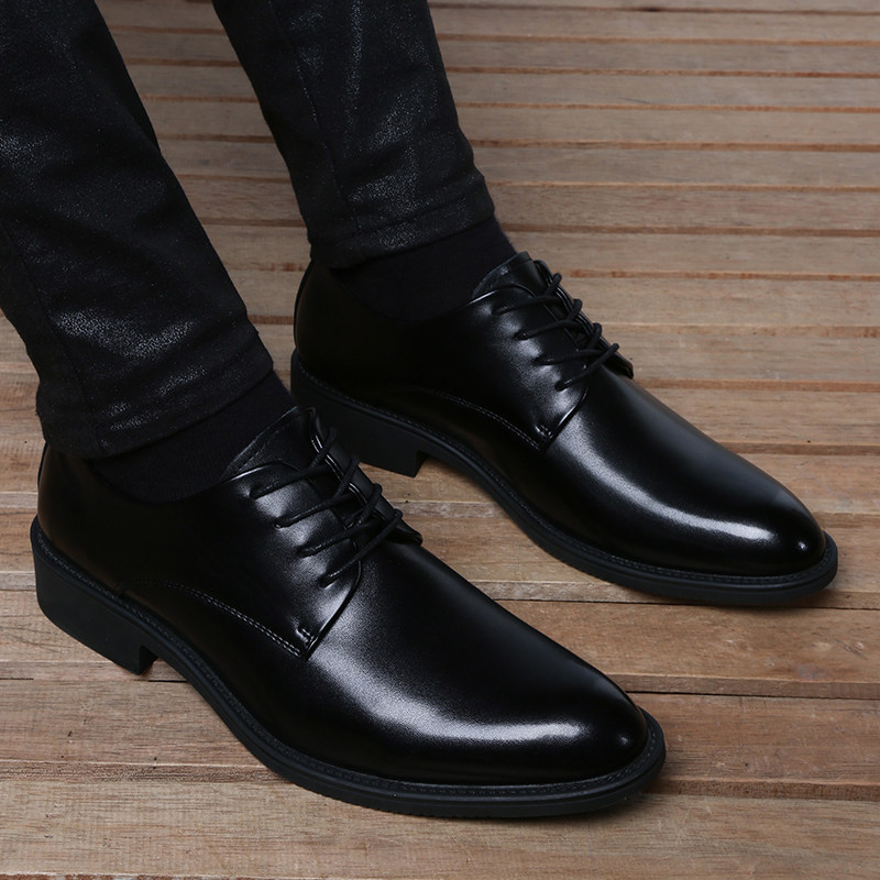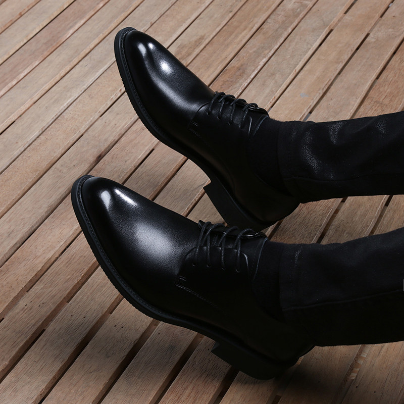 Summer leather shoes Men's leather Soft bottom Inn Leisure inside Heightening Men's Shoes Pointy Korean Version Black Business Positive Dress Men's Shoes