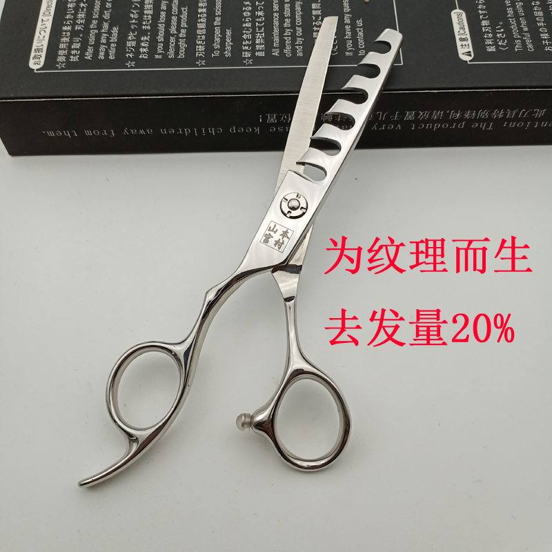 Left-hand hairdressing hole shear texture seamless thinning hair salon professional modification cutting teeth scissors 6 teeth hole scissors