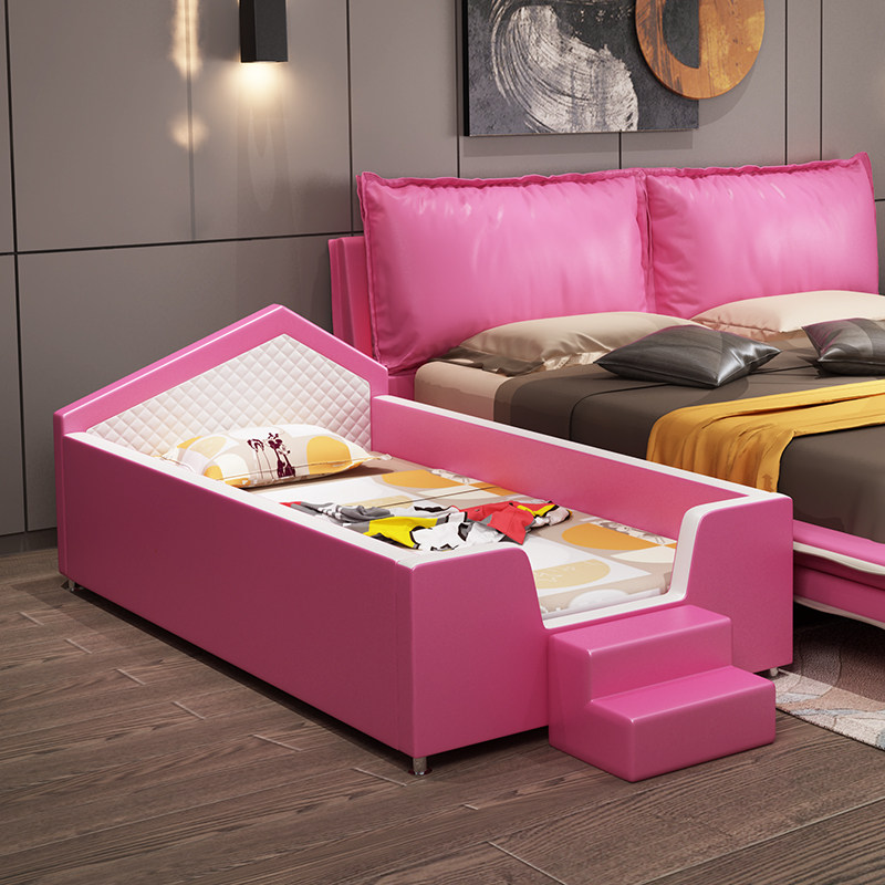 Children's leather bed boy girl princess bed child widening combination with guardrail stitching bed crib stitching king bed