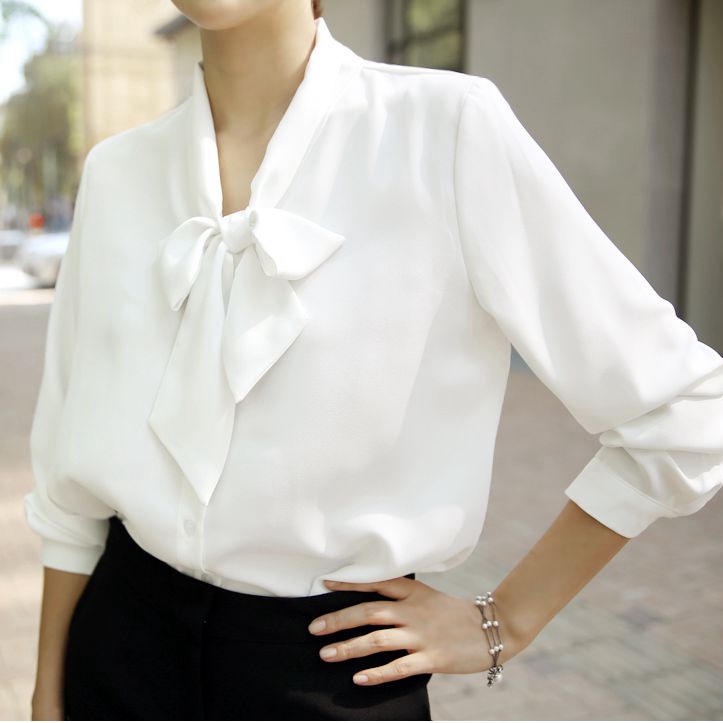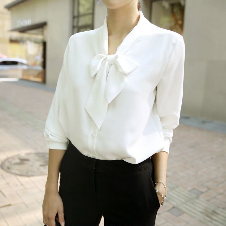 100 hitch base tie white shirt blouse blouses black OL pro women's commute know temperament South Korea-Taobao
