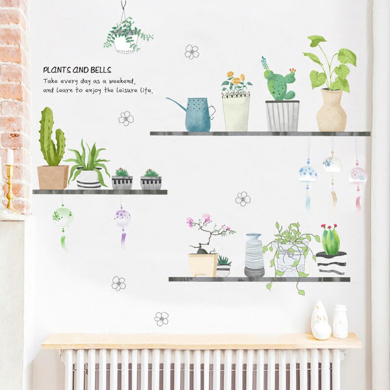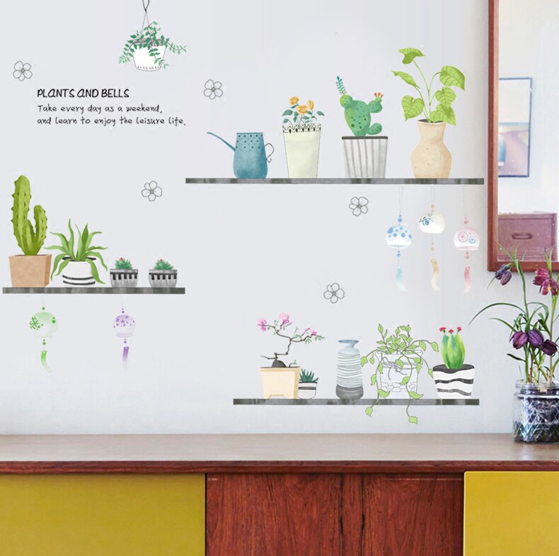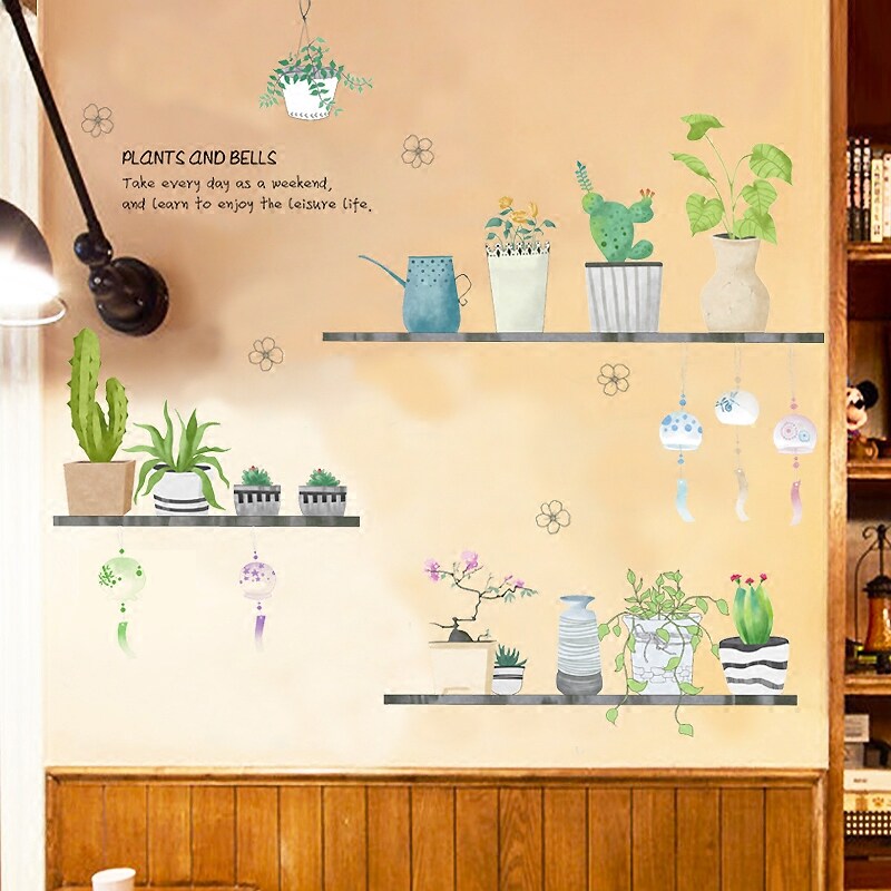 Net red small fresh potted creative wall stickers living room bedroom dormitory bedside wallpaper self-adhesive decoration stickers