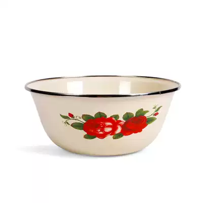 Enamel Bowl Nostalgic Old Style Large Fresh Pastery Bowl Pig Oil Tanks Hand Wash Bowl Household Soup Bowl with Lid Cover Pot