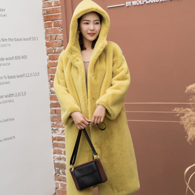 Imitation Mink Fur Coat Women's Autumn and Winter Mid-length Loose Hooded Velvet Eco-Friendly Faux Fur Coat