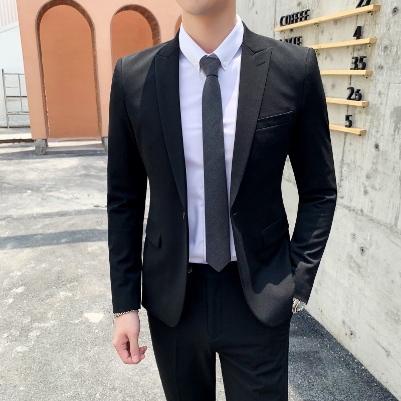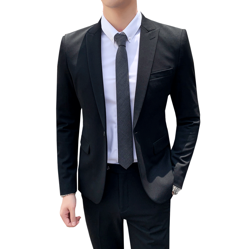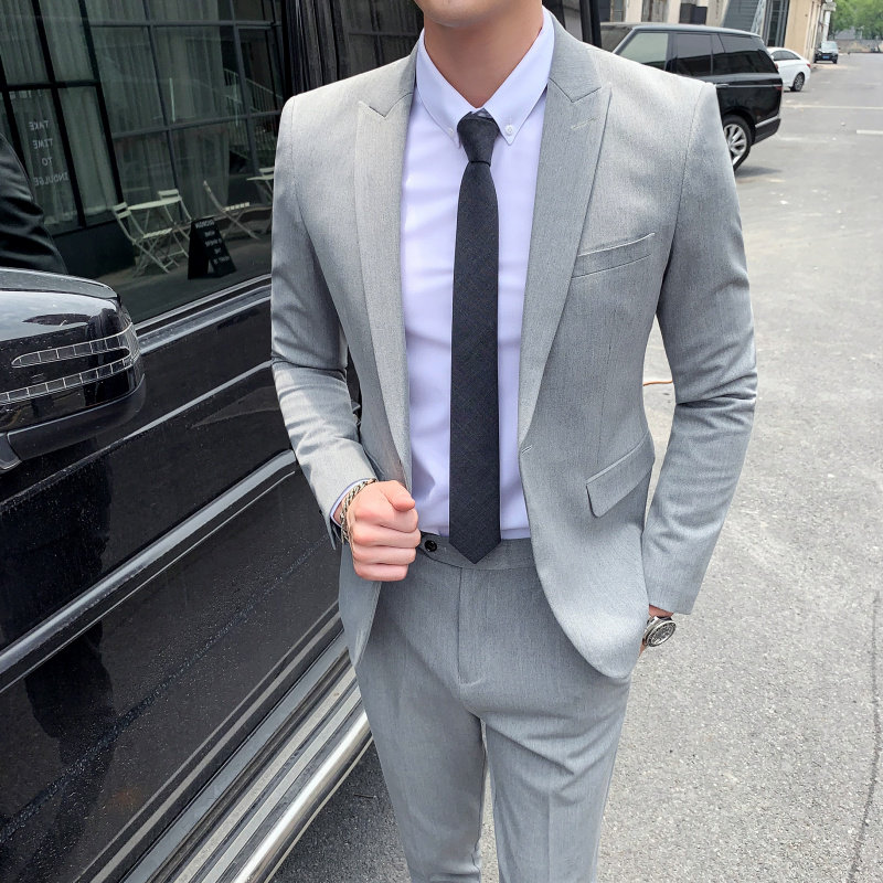 Youth solid color suit suit male wedding groom dress business casual formal dress two-piece small suit British style
