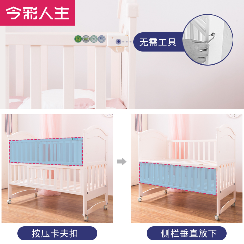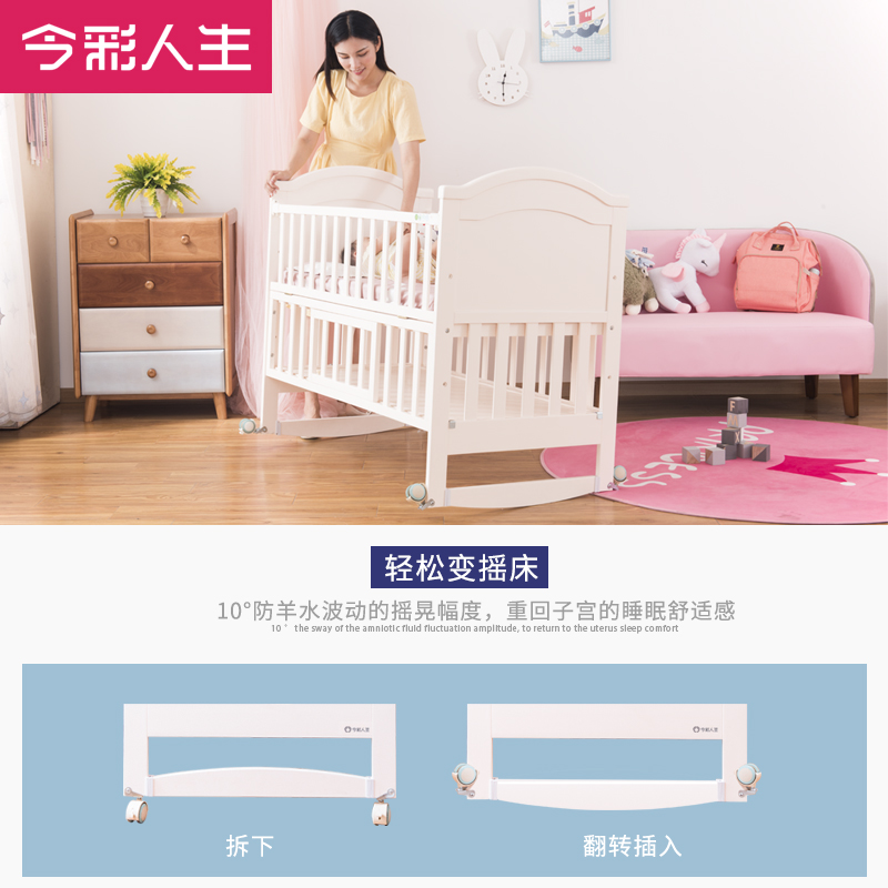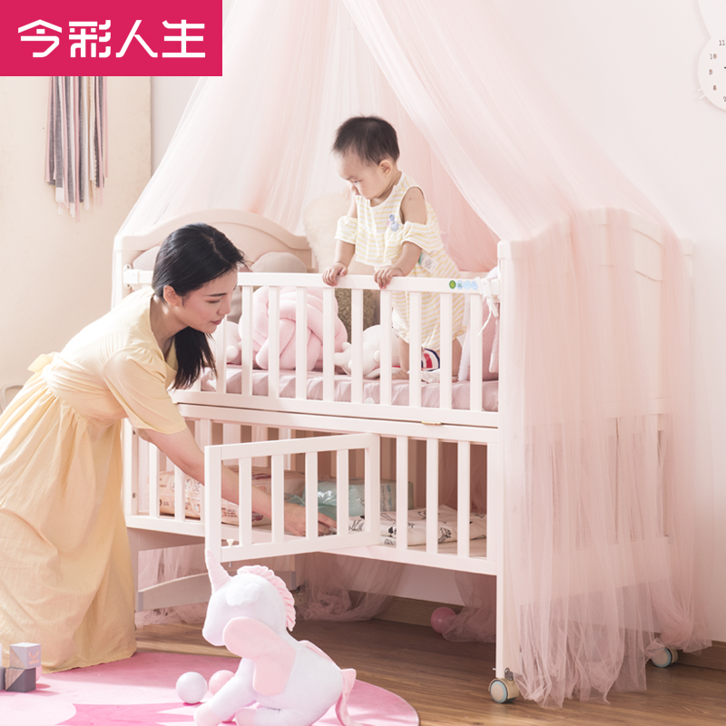 This Color Life Multifunction Crib Splicing Large Bed Can Move Solid Wood With Rollers Adjustable Height Newborns