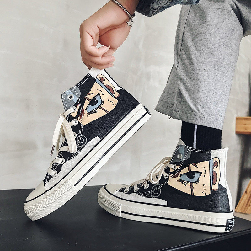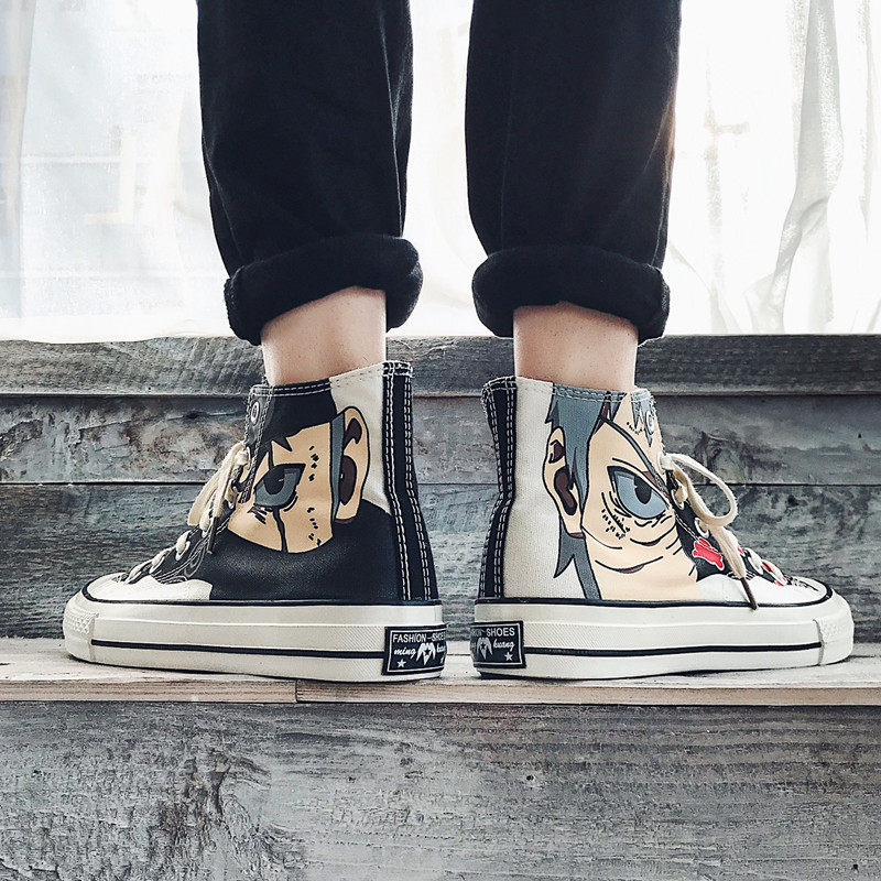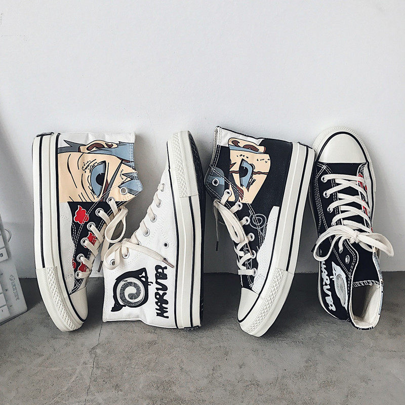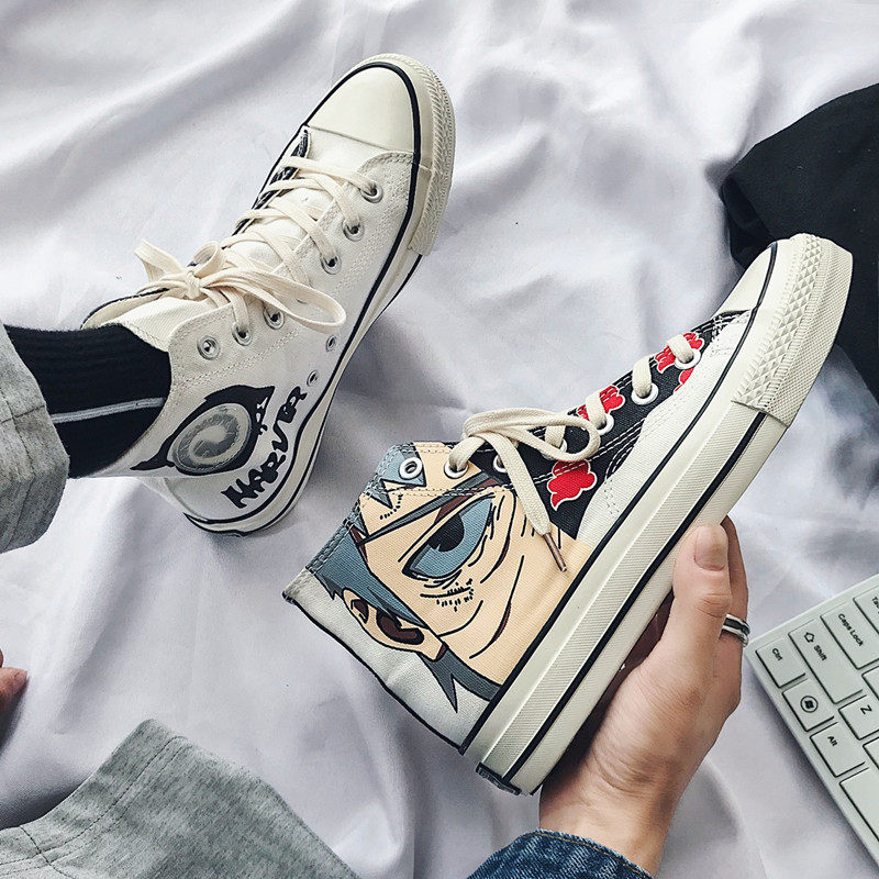 Naruto joint shoes summer men's shoes high-top canvas shoes Korean version of all-match student tide shoes couple mandarin duck shoes
