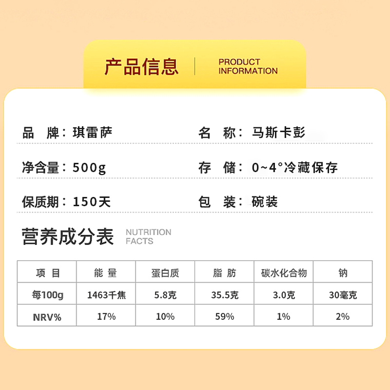 Chressa Masscapen Cheese Cheese Cheese Tiramisu Special Raw Material Maska Puffed Cream for baking cream