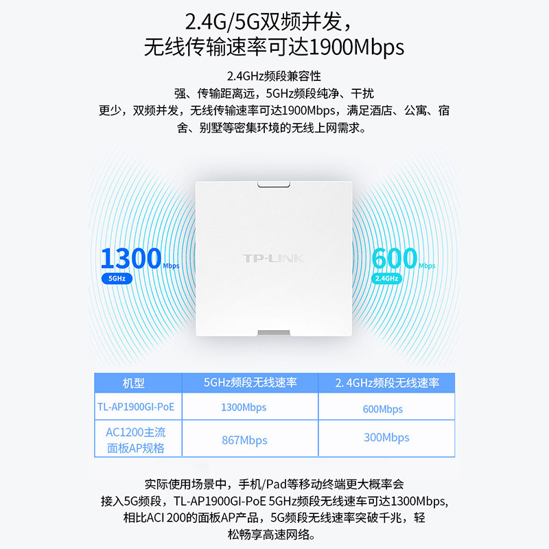 TP-LINK Wireless ap Panel 86 1900M 1900M one thousand trillion one thousand trillion-frequency 5G Entrance Wall Embedded POE Internet Socket Villa Wifi Router Overlay TL-AP19