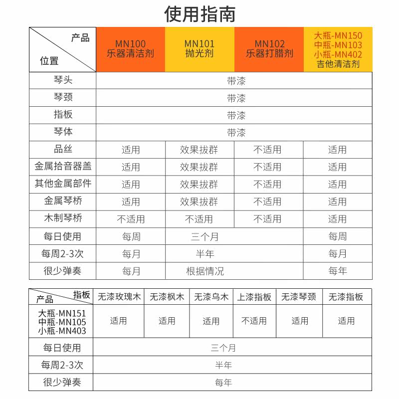 MN100 (instrumental cleanser) MN101 (instrument polishing agent) MN102 (instrumental waxy agent) MN103 (guitar 1 Number of care agents 120ml) MN10