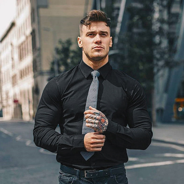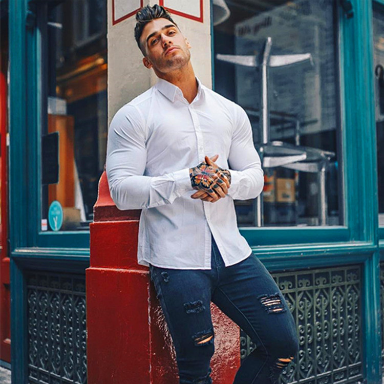 Muscle faith fitness shirt Long sleeve high elastic slim fit net red training suit Basketball brothers casual business men's top
