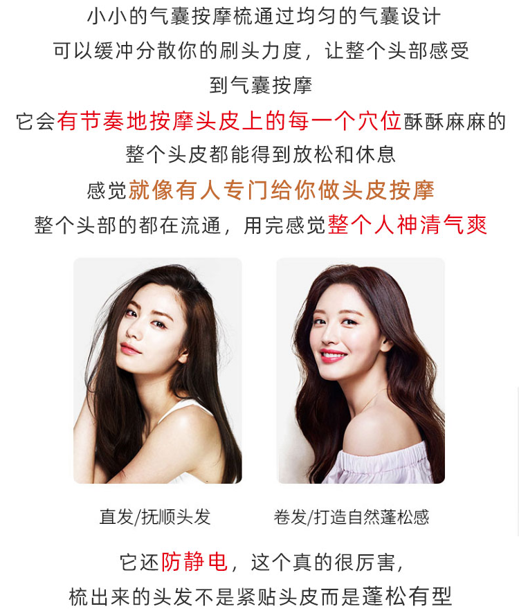 Big S recommended airbag air cushion wooden comb massage meridian comb Anti-static non-knot curly hair Shun hair female net red model