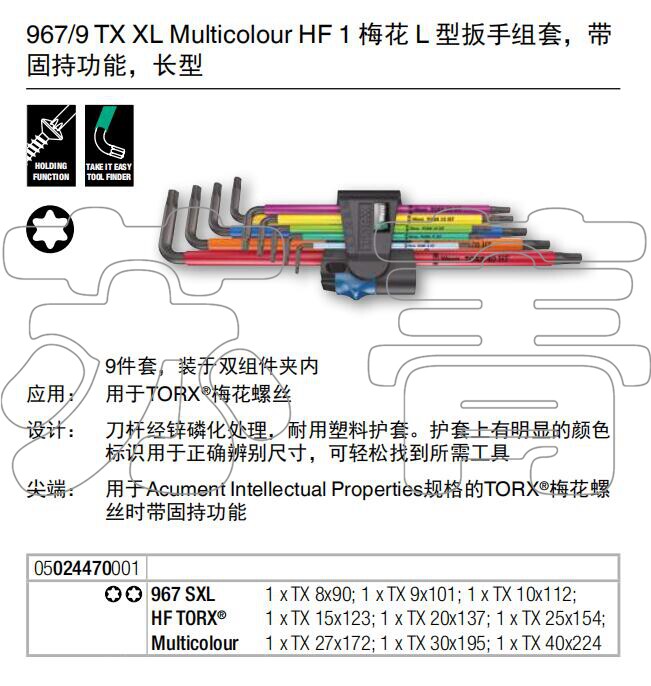 Germany wera Vera 967 9 TX XL extended star plum L-type wrench 9-piece set of fixed